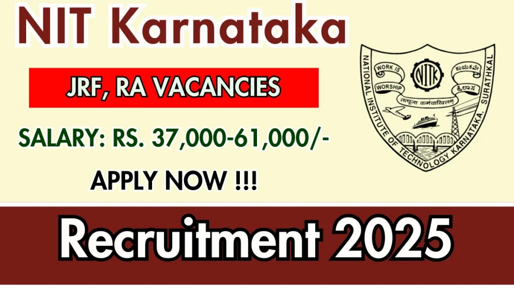 NIT Karnataka Recruitment 2026: National Institute of Technology Karnataka (NITK) ने NIT Karnataka Recruitment 2026 के अंतर्गत Research Associate के 1 पद के लिए भर्ती अधिसूचना जारी की है। यह अवसर उन अभ्यर्थियों के लिए बेहद खास है जो उच्च शिक्षा, अनुसंधान और अकादमिक करियर में आगे बढ़ना चाहते हैं। सरकारी संस्थान में काम करने का यह मौका स्थिरता के साथ-साथ पेशेवर विकास भी प्रदान करता है।